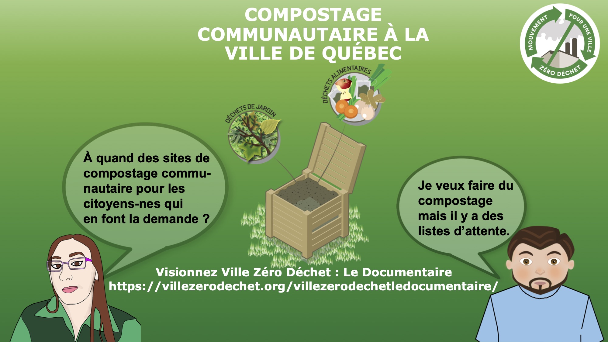 Le documentaire a été produit par le Mouvement pour une ville Zéro déchet afin de rendre visible deux visions de gestion des matières résiduelles : l’approche du Zéro déchet et l’approche éco-industrielle privilégiée par la Ville de Québec. Par ce documentaire, le Mouvement pour une ville Zéro déchet souhaite sensibiliser la population aux enjeux collectifs et politiques de gestion des matières résiduelles.