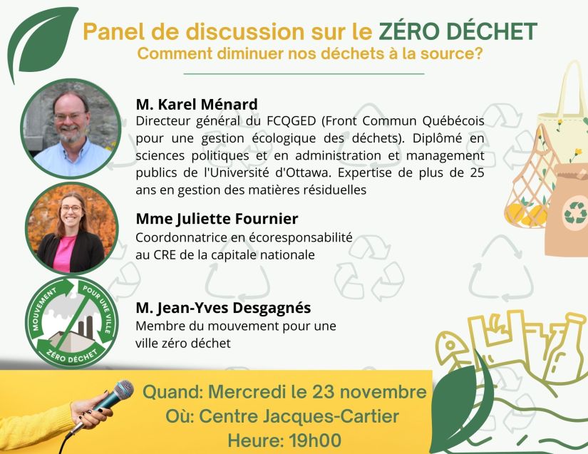 Panel de discussion sur le Zéro déchet le 23 novembre 2022 à 19h00